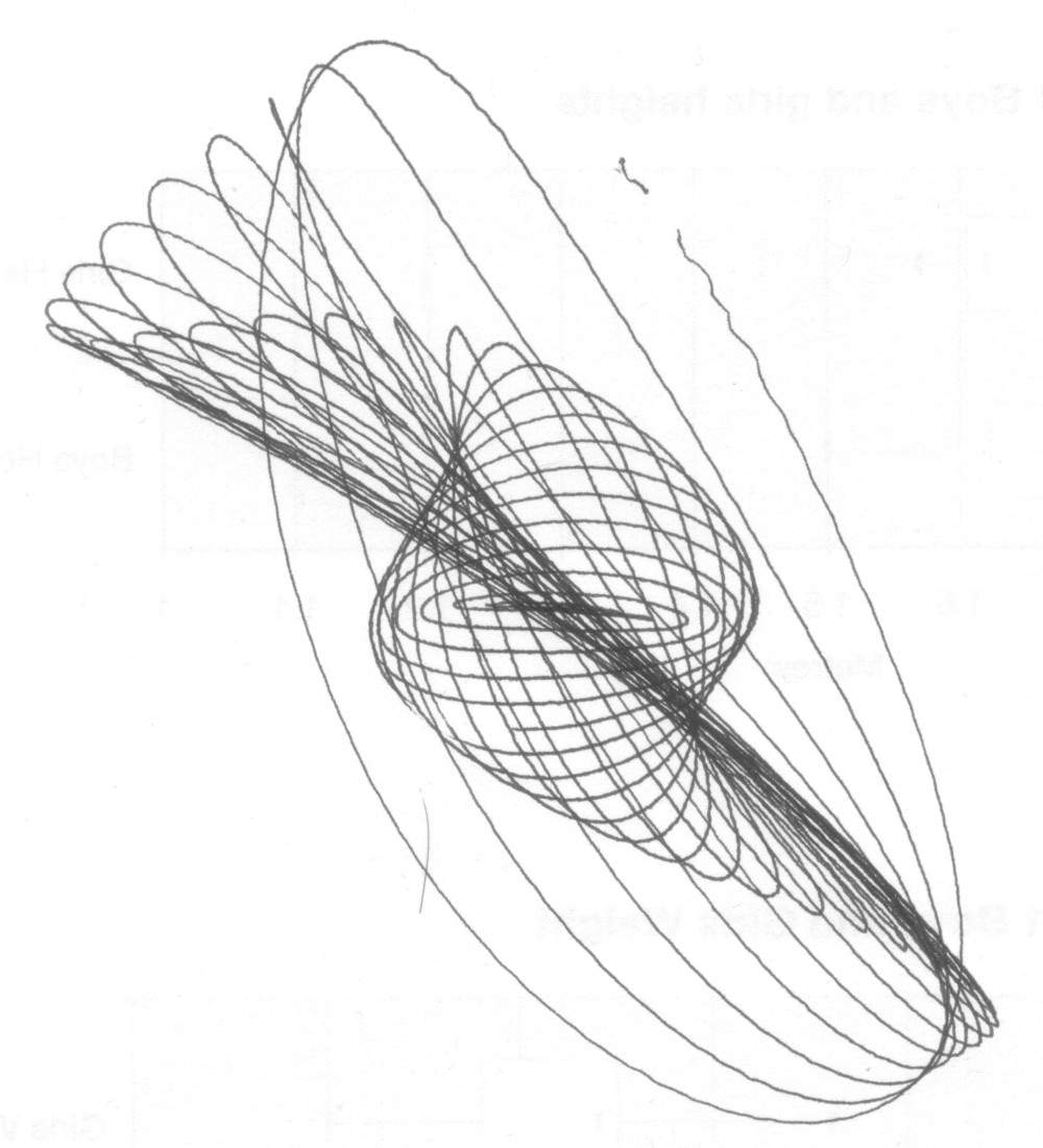 | Another view of the harmonograph and some examples of what it has produced: |